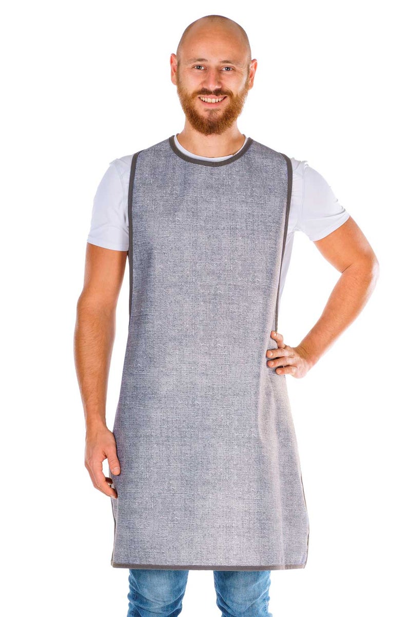 Pestävä esiinalta näyttävä ruokalappu kooltaan 130×75 cm. Ruokalapussa on selkäpuolella solmittava kiinnitys ja ruokalapun voi solmia helposti kaulalle myös itse pujottamalla kaulalenkin toisen lenkin läpi.
