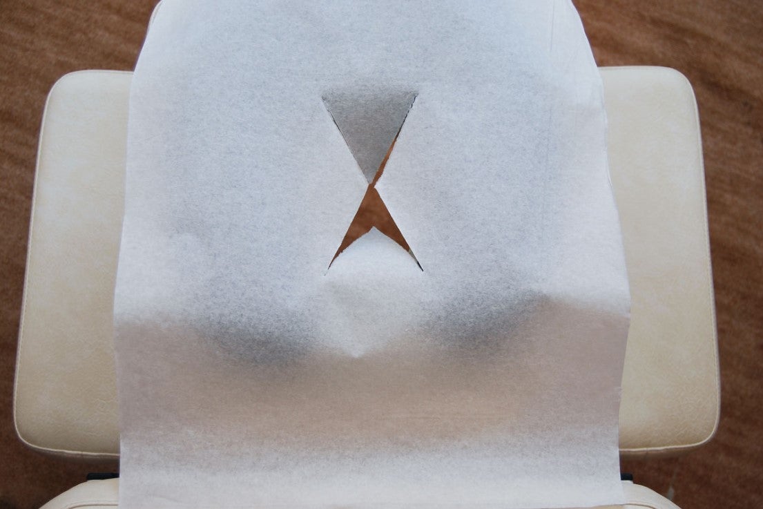 Käyttöä helpottavalla x-viillolla varustettuja kasvoaukon suoja-arkkeja tissuepaperista