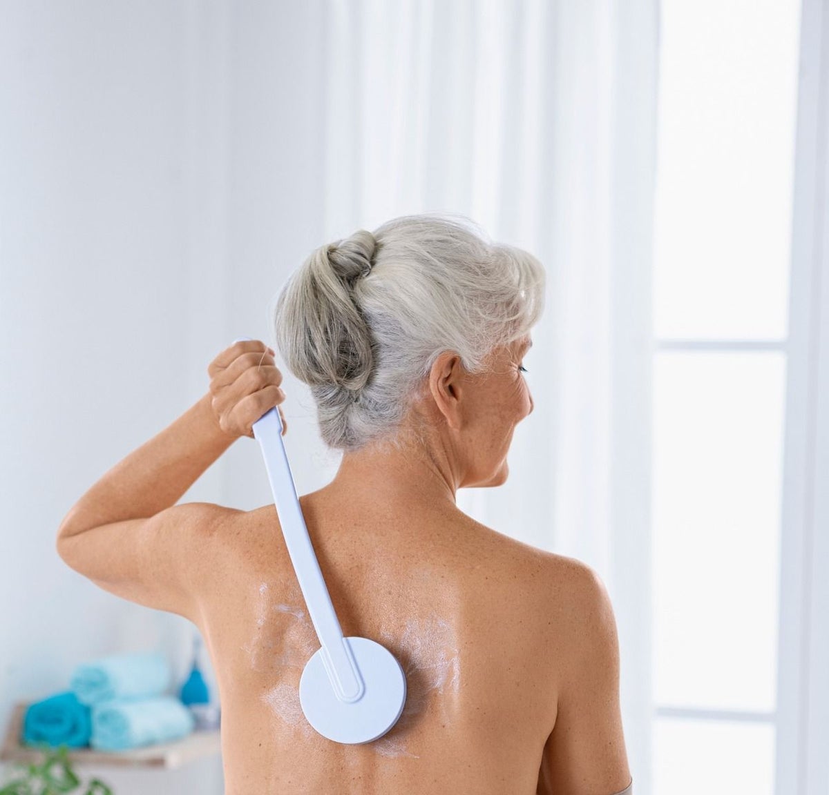 Voiteenlevittimen avulla voit helposti hieroa vartaloasi vartalovoiteella tai peseytyä suihkugeelillä. Täytä pää voiteella tai suihkugeelillä ja anna 19 pyörivän pallon hieroa lihaksia samalla kun levität voiteen vartalolle. Jatkettu kahva varmistaa, että pääset vaikeisiin paikkoihin kehossasi, esimerkiksi pesemään selkää, sääriä tai jalkoja. Sopii henkilöille, joilla on rajoittunut käsien tai hartioiden toiminta.
