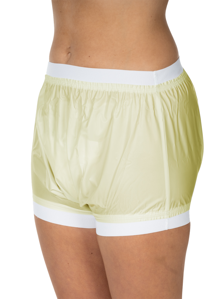 Nesteenpitävät PVC-muovihousut puetaan vaipan päälle tuomaan lisäsuojaa vaikeaan inkontinenssiin. Housujen leveät resorit vyötäröllä ja lahkeensuissa ovat pehmeät ja lisäävät käyttömukavuutta. Housut antavat suojaa ohivuodoilta sekä liikkuessa että makuuasennossa.