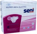 Super Seni Quatro on kuitukangaspintainen teippivaippa erittäin vaikeaan inkontinenssiin. Ne istuvat hyvin joustovyötärön ja uudelleenkiinnittyvien neljän teipin ansiosta. Vuotosuojat ja nesteenkuljetusjärjestelmä suojaavat luotettavasti vuodoilta.